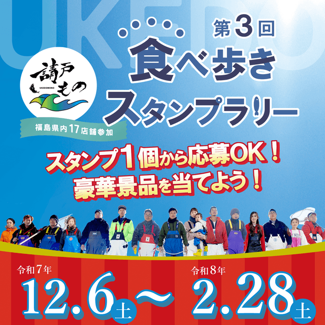請戸漁港で水揚げされる、通称「請戸もの」を仕入れ・取扱いしている飲食店や宿泊施設等、福島県内の17店舗をめぐって、請戸ものの美味しさを味わってください。
