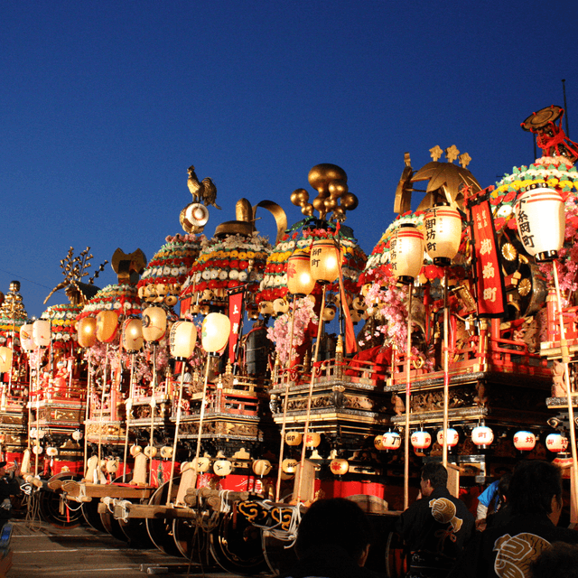 町の人たちは、授かった宝物をしまい込んでおくのはもったいない、みんなに見てもらえる良い方法はないかと考えました。そこで、高岡の「御車山(みくるまやま)」のような立派な山車を作り、これらの品を御神体として掲げて町を練り歩くことを思いつきます。
