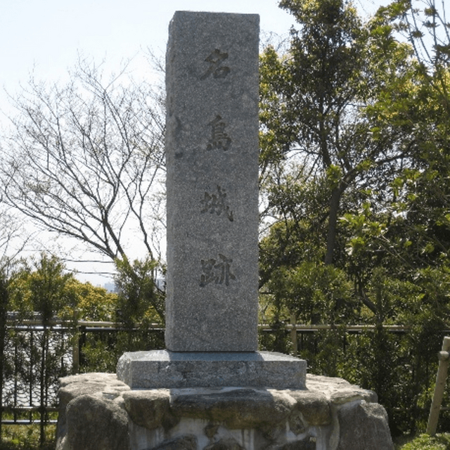 現在は公園として整備され、人気の花見スポットになっています。付近には、神功皇后(じんぐうこうごう)ゆかりの帆柱石(ほばしらいし)(木の化石。国指定記念物)や、名島神社もあります。
