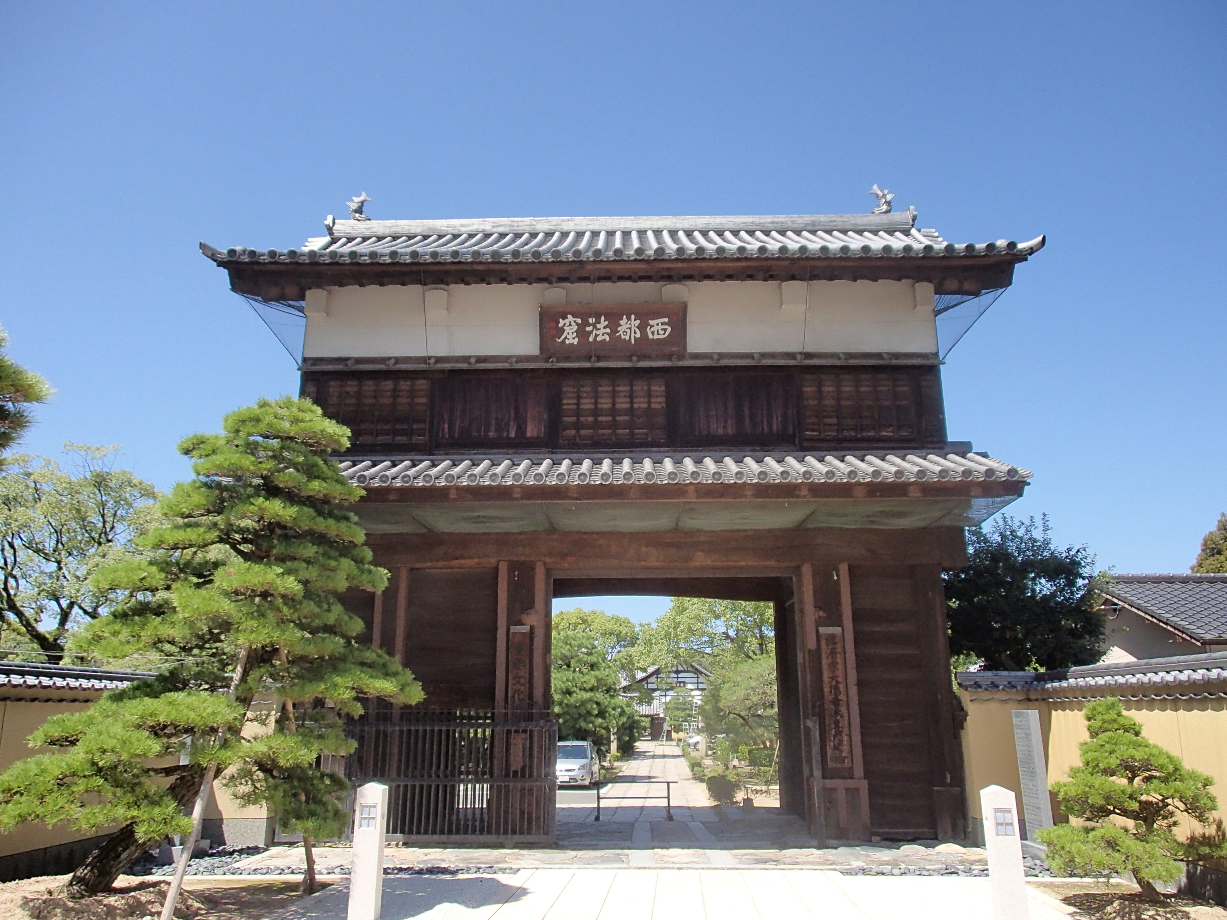 山門は旧福岡城の本丸表御門を移築したもので、県の文化財に指定されています。同じく県指定文化財の唐門は旧名島城の遺構であると伝えられていますが、桃山時代の作柄そのままではなく、江戸時代初期に改築されたものと推定されています。市内に残る最古の唐門です。