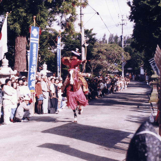 The main hall (a Fukuoka City–designated Tangible Cultural Property) was built in Tenmei 6 (1786). The shrine also preserves Song-style stone komainu (guardian dogs) from the Nanboku-chō period (a Fukuoka Prefecture–designated Tangible Cultural Property) and ancient documents explaining the shrine's origins (a Fukuoka City–designated Tangible Cultural Property). The kayu-ura porridge divination, which forecasts the year’s harvest by the appearance of mold on rice gruel, is designated as a Prefectural Intangible Folk Cultural Property, and the yabusame horseback archery held in October is designated as a City Intangible Folk Cultural Property.