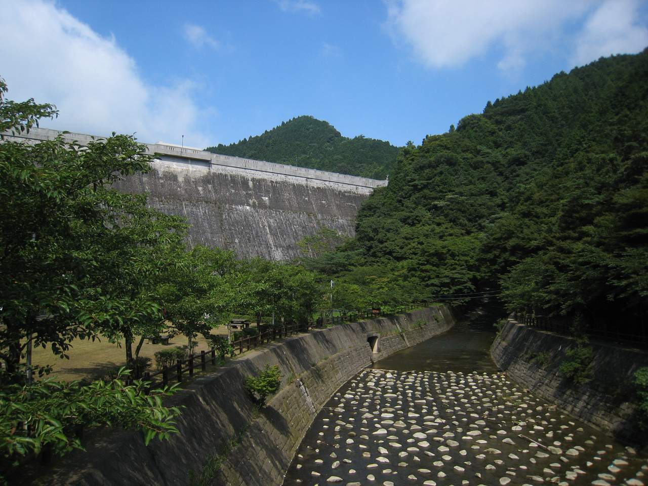 大正5年の起工以来7カ年の歳月をかけて完成した福岡市で最初の上水道ダムです。堰堤(えんてい)の高さ45メートル、長さ161メートル、上部の幅4メートルの規模で、260万8千トンの貯水が可能な重力式ダムです。当初は12万人へ給水をしていましたが、市勢の発展と共にダムも拡張工事が行われ、現在の大きさになりました。