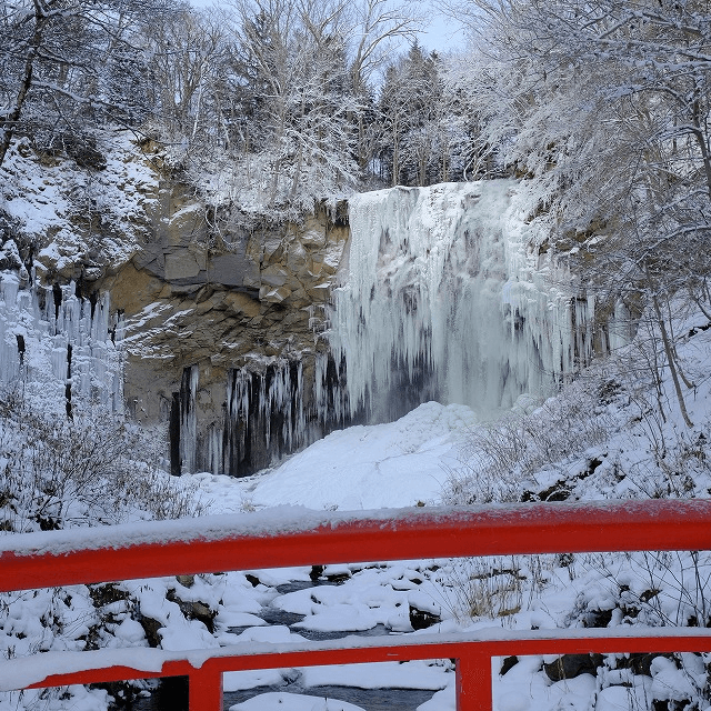 園内では「アシリベツの滝」や「鱒見の滝」の氷瀑を見ることができます。