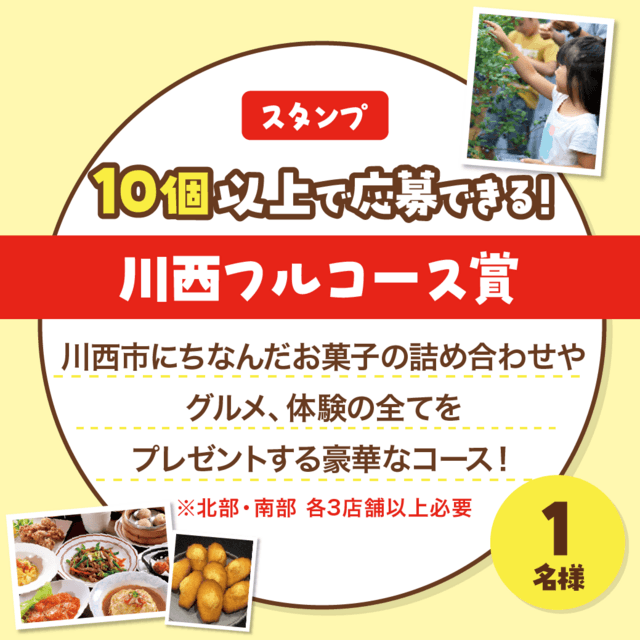 抽選で1名様に、川西市にちなんだスイーツ・グルメ・体験の全てをプレゼントする豪華なコースです!