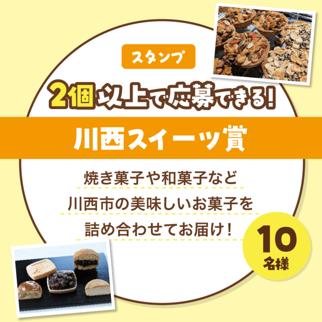 抽選で10名様にグルメ・スイーツ・カフェをテーマに、川西市の美味しいお菓子を詰め合わせをプレゼントいたします!